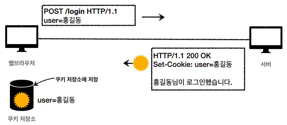 Set-Cookie : 서버 → 클라이언트로 쿠키 전달 (응답)