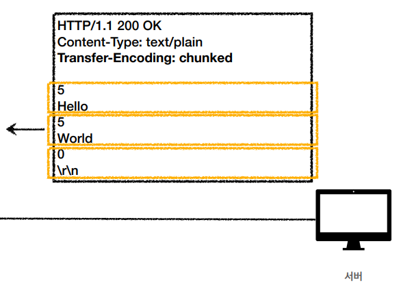 분할 전송 시 chunk마다 content 길이 명시 => 헤더에 Content-Length 사용 불가