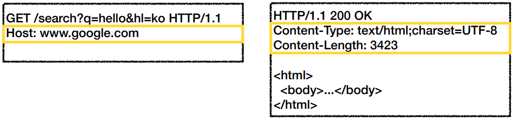 엔티티 헤더 => 엔티티 본문의 데이터를 해석할 수 있는 정보 제공 ex) 데이터 유형(html, json), 데이터 길이, 압축 정보 등등