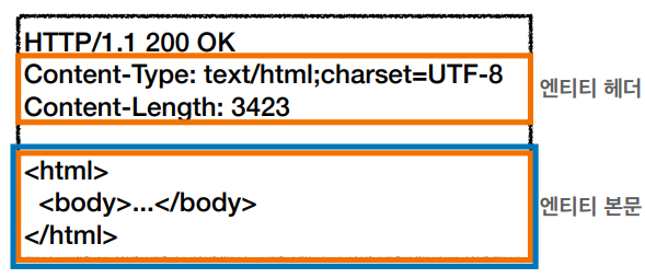 Entity 헤더 : 엔티티 바디 정보 ex) Content-Type: text/html, Content-Length: 3423