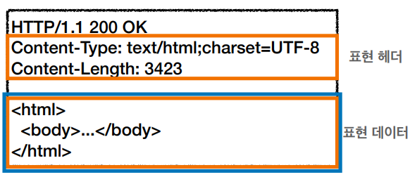 표현 헤더 : 표현 데이터를 해석할 수 있는 정보 제공 ex) 데이터 유형(html, json), 데이터 길이, 압축 정보 등
