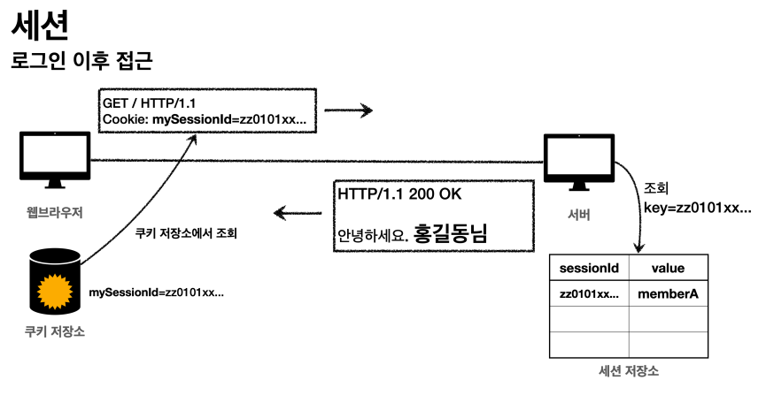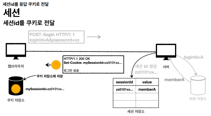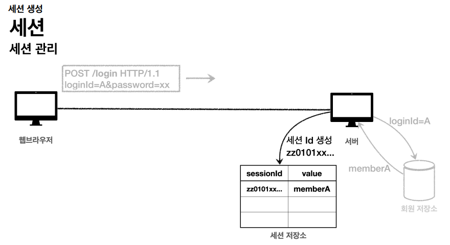 - 세션은 서버 메모리에 생성됨 → 메모리 크기가 무한하지 않으므로 꼭 필요한 경우에만 생성해서 사용해야 함 (실무에서는 member 객체 전체 X 필요한 정보 담은 객체만 O)