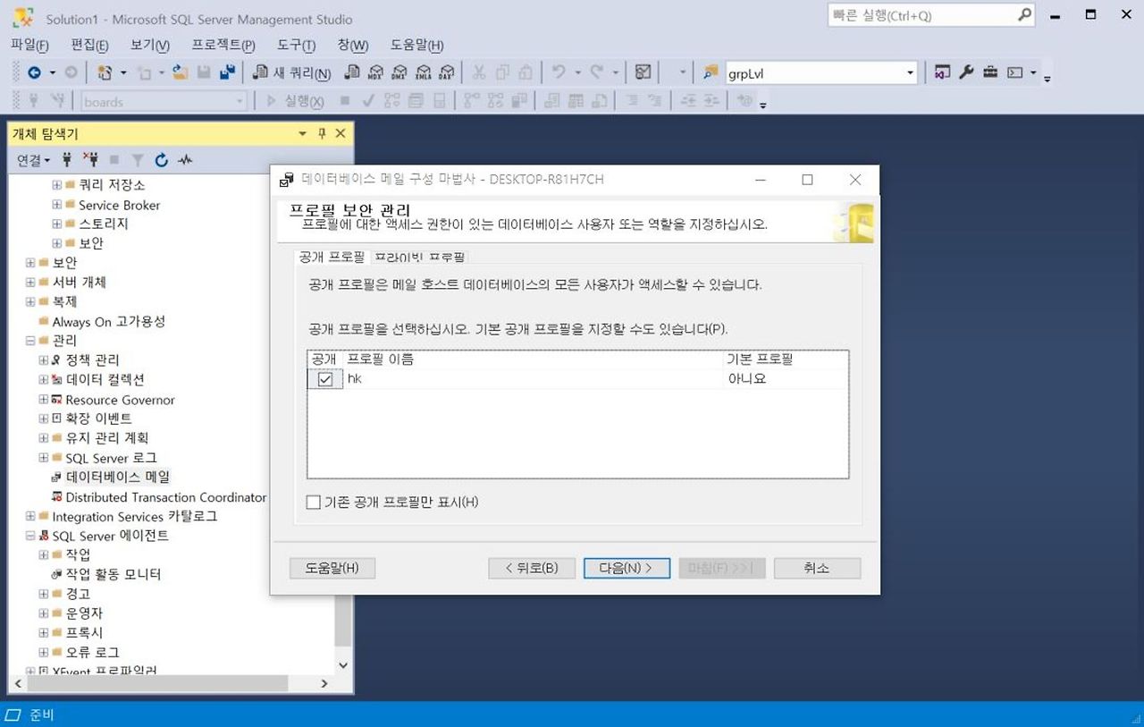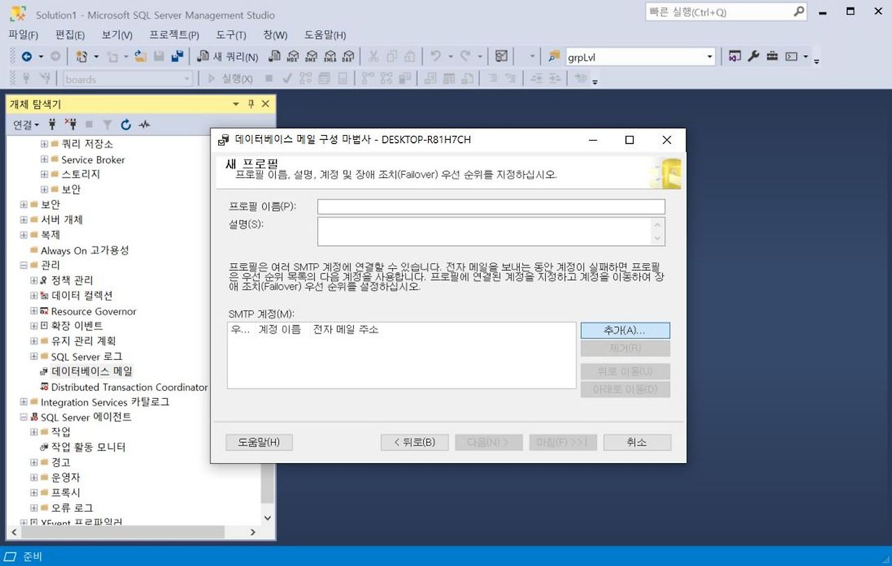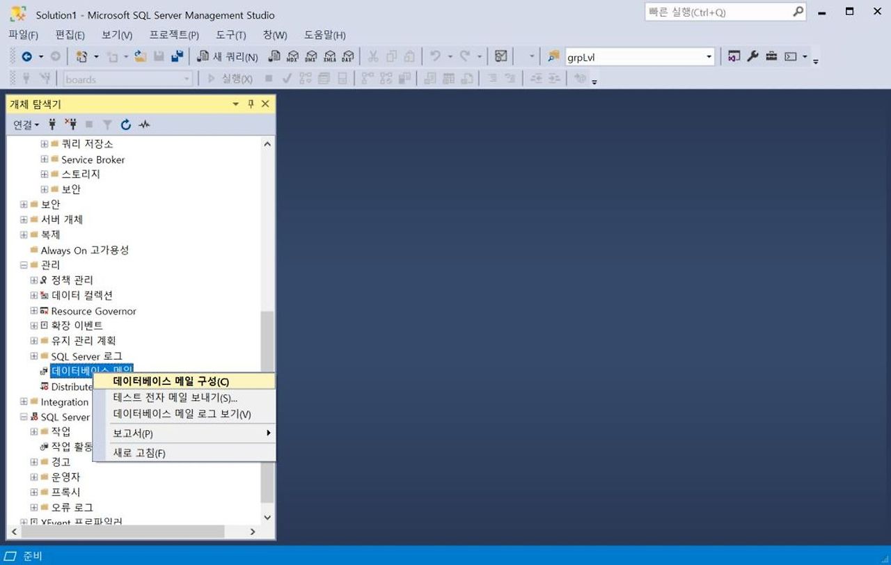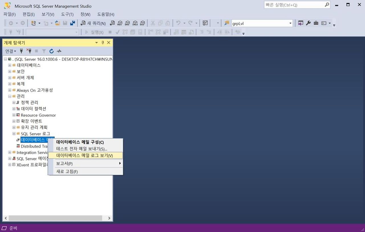 1. [관리] - [SQL Server 로그] - [데이터베이스 메일] - [데이터베이스 메일 구성]