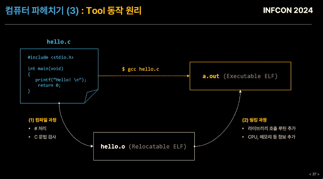 소프트웨어 => Compile(문법 검사) & Linking(실행에 필요한 정보 추가) 과정으로 구성됨