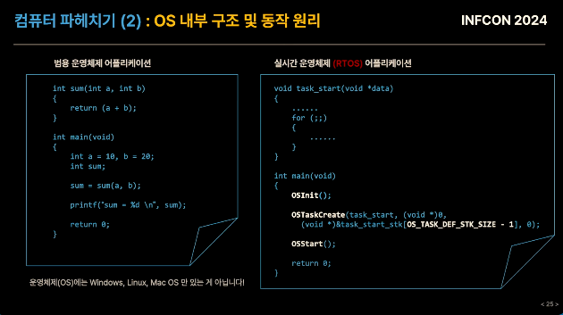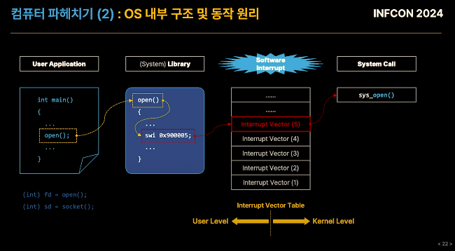 : OS 커널 내부 함수를 작성해야 실행 가능