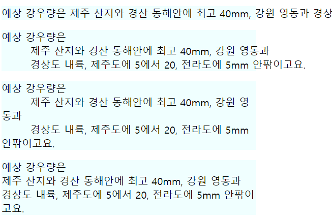 white-space: pre-line; /*영역 안(벗어나면 다음 줄) 입력 모양대로 왼쪽정렬*/
