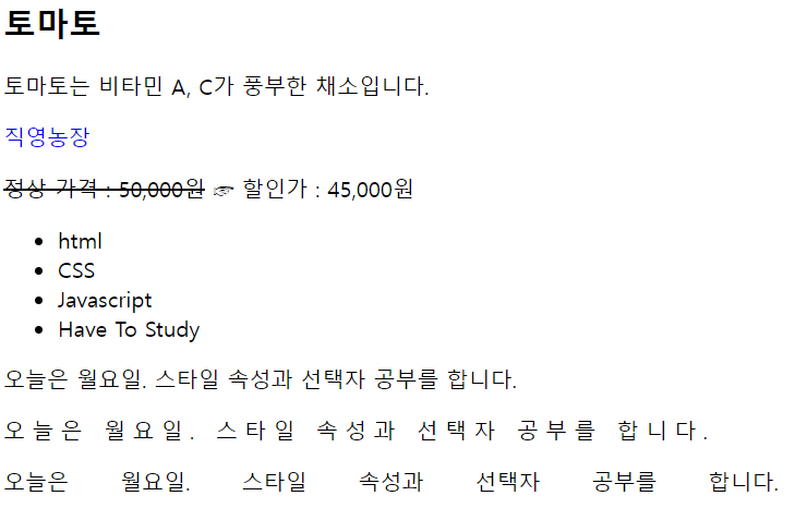<p class="target3">오늘은 월요일. 스타일 속성과 선택자 공부를 합니다.</p>