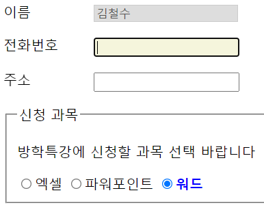 <label><input type="radio" name="subject" value="excel">엑셀</label>