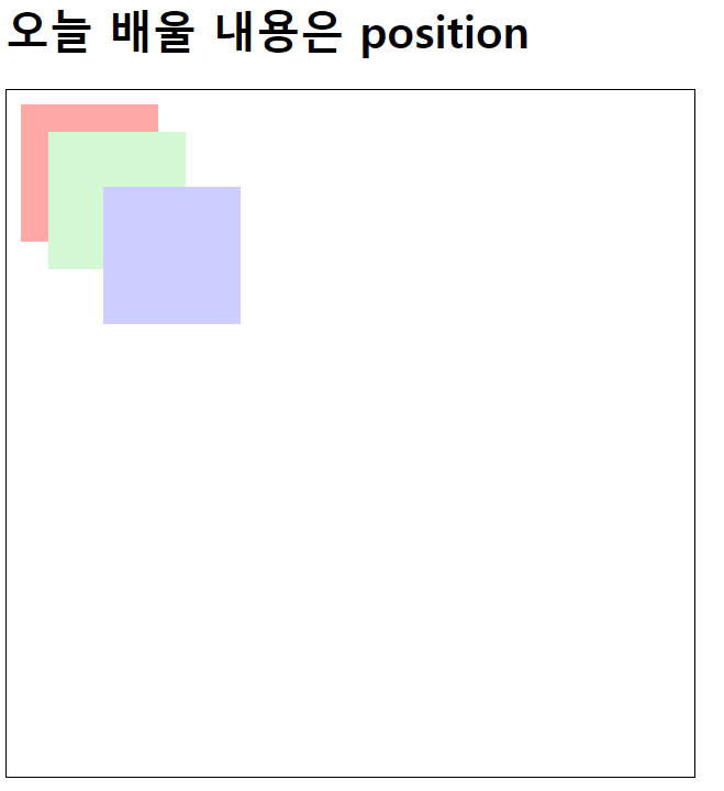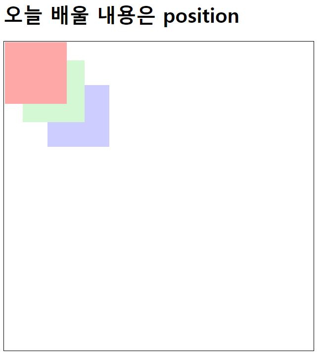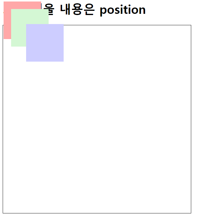 2. absolute : 부모 기준 이동(부모 안에서 자리잡기) -> 부모 position 필수 / 처음 위치 (0,0)